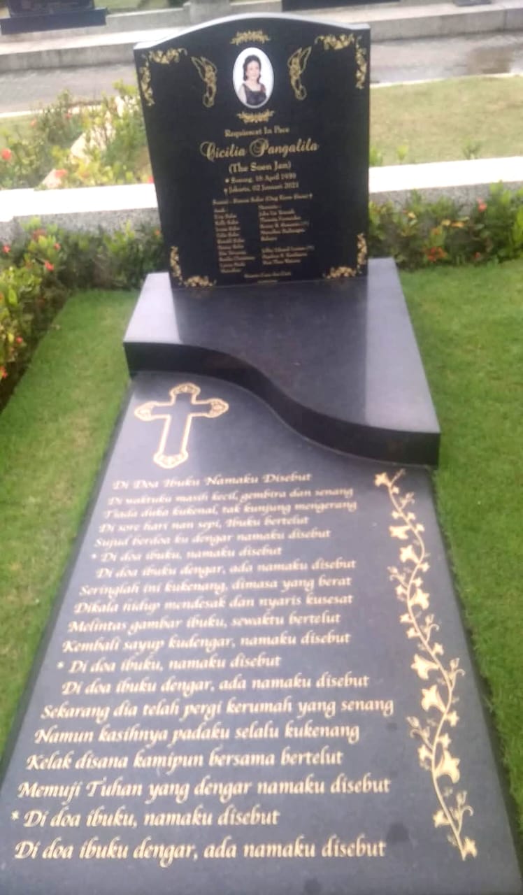 Ibenk grafir indonesia mengerjakan bangunan makam dari media granit dan tinta emas yang berkualiatas dengan mesin samblasting sehingga ukiran lebih dalam rapih
