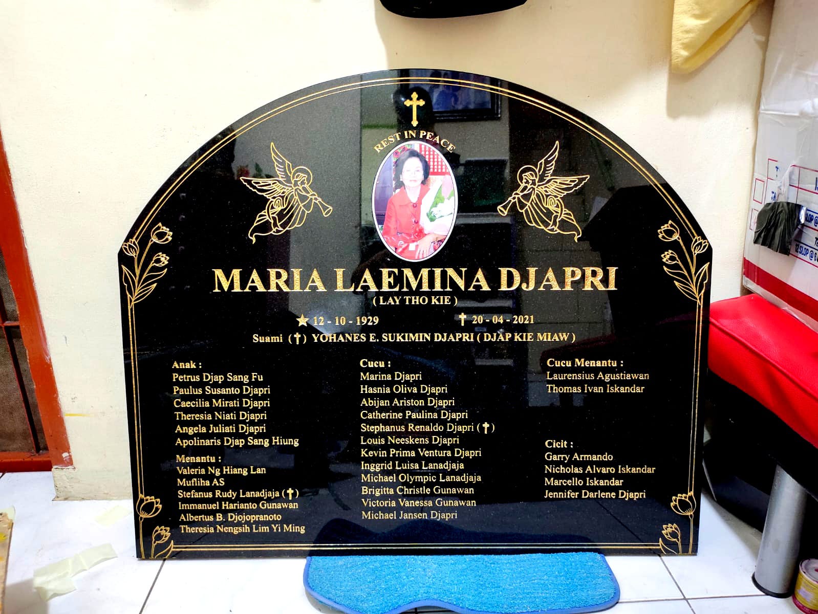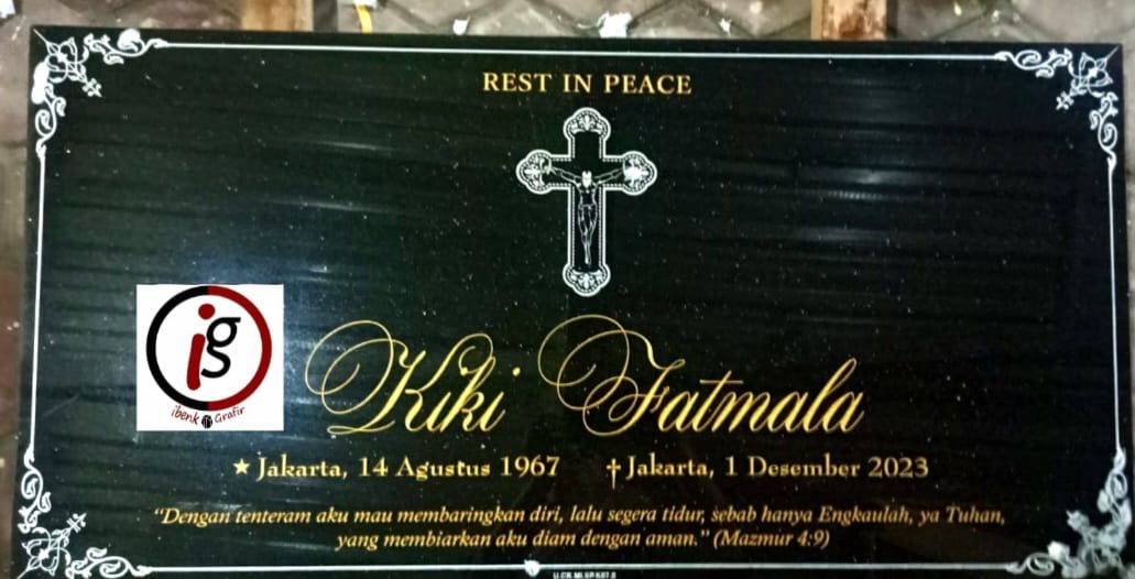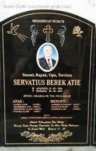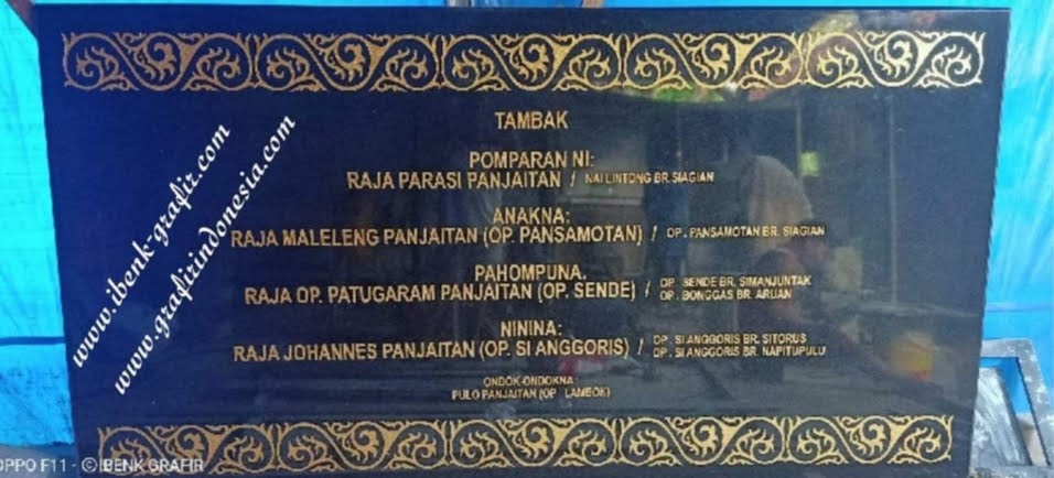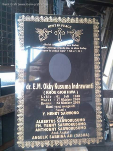 Ibenk grafir indonesia mengerjakan Nisan Bongpai dari media granit dan tinta emas yang berkualiatas dengan mesin samblasting sehingga ukiran lebih dalam rapih
