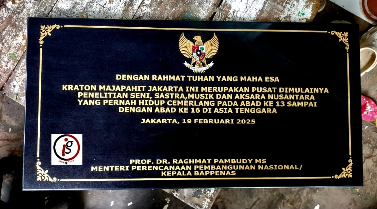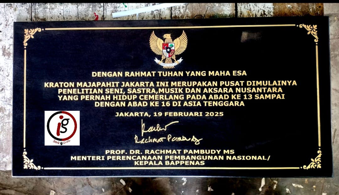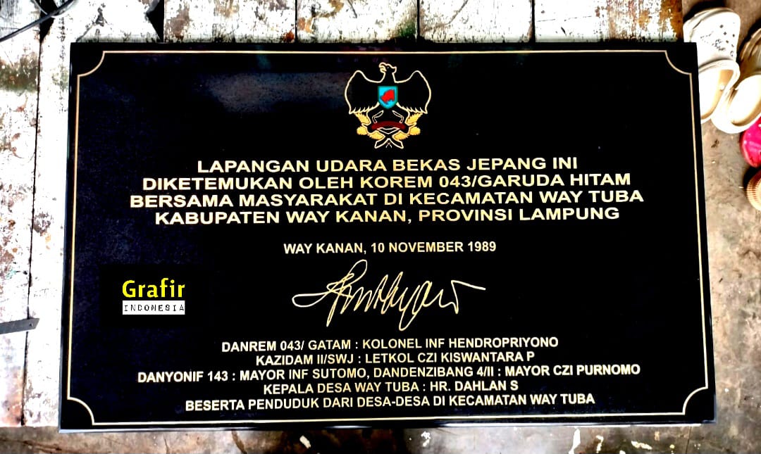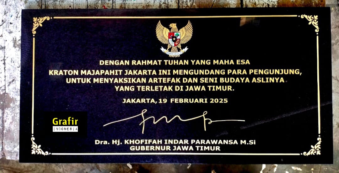 Ibenk Grafir Indonesia mengerjakan prasasti peresmian gedung dari media granit dan tinta emas yang berkualiatas dengan mesin samblasting sehingga ukiran lebih dalam rapih ukuran 60 x 90