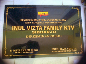 Ibenk grafir indonesia mengerjakan prasasti peresmian gedung Inul vista dari media granit dan tinta emas yang berkualiatas dengan mesin samblasting sehingga ukiran lebih dalam rapih ukuran 60 x 90
