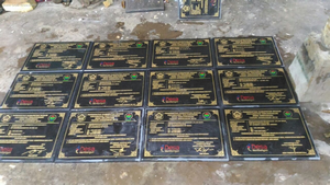 Ibenk grafir indonesia mengerjakan prasasti peresmian gedung dari media granit dan tinta emas yang berkualiatas dengan mesin samblasting sehingga ukiran lebih dalam rapih ukuran 60 x 90