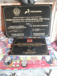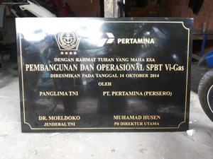 Ibenk grafir indonesia mengerjakan prasasti peresmian masjid dari media granit dan tinta emas yang berkualiatas dengan mesin samblasting sehingga ukiran lebih dalam rapih ukuran 60 x 90